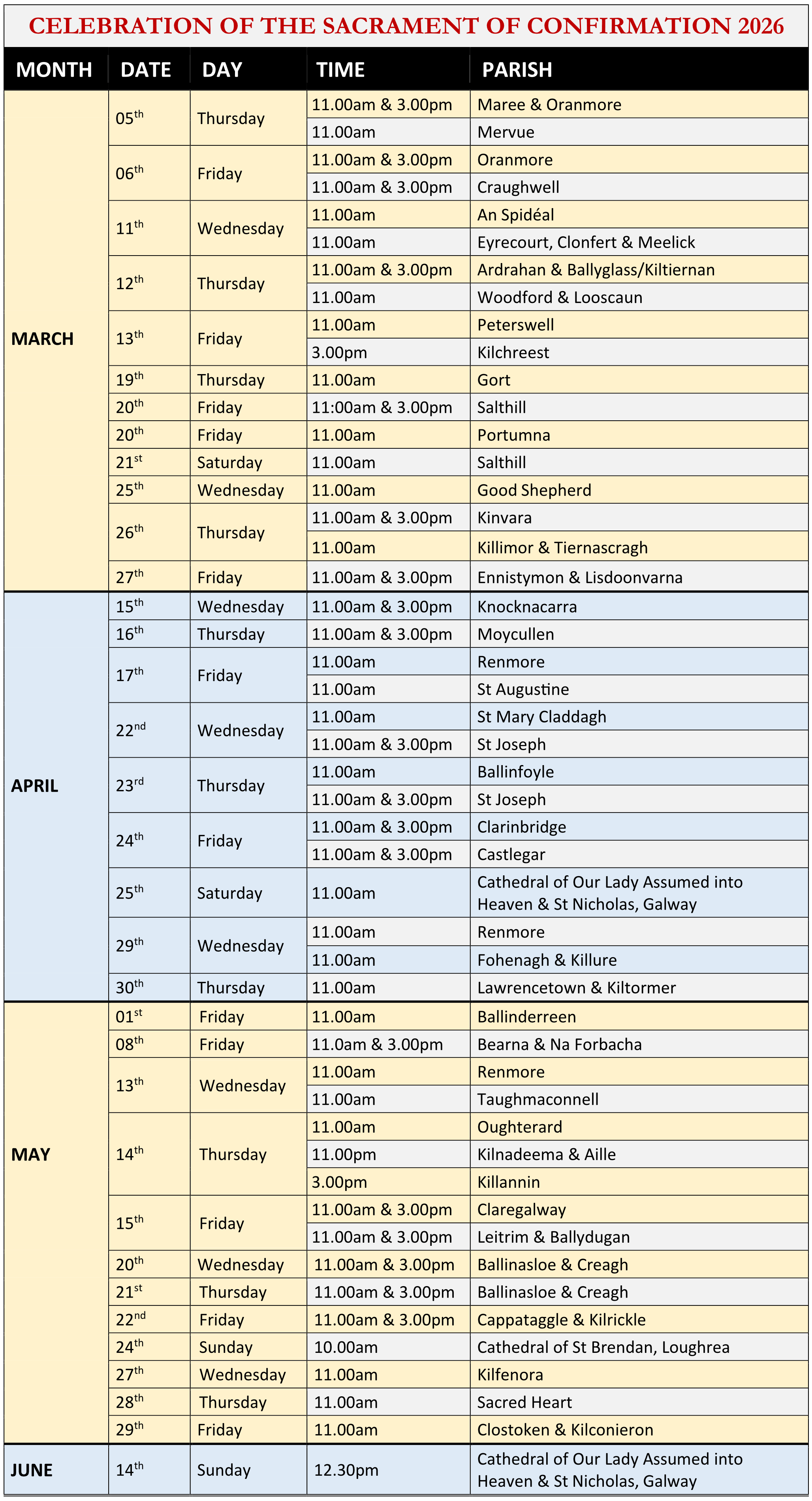Please click to access a pdf file: Schedule of dates for Confirmation ceremonies in 2026